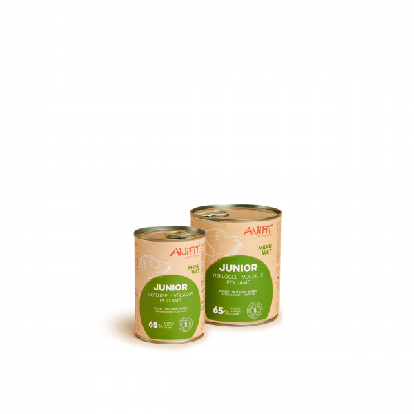 Il cibo umido «Junior pollame» ha una consistenza solida ed è completamente bilanciato e pronto per essere servito. Esso contiene il 65% di interiora. I cuccioli hanno bisogno di più minerali e vitamine, quindi la percentuale più elevata di interiora è fondamentale: